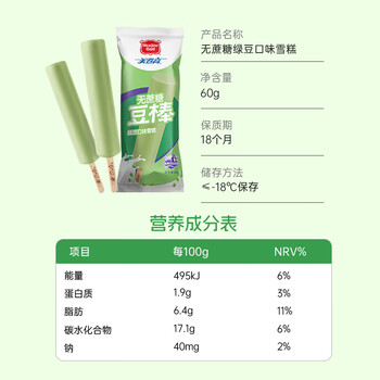 美登高无蔗糖绿豆口味雪糕冰淇淋冰激凌冷饮 60g*10支