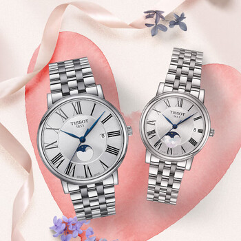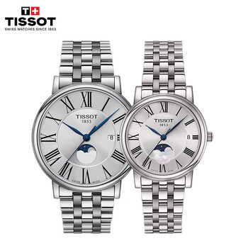 天梭(TISSOT) 卡森臻我系列情侣对表 瑞士石英情侣表钢带腕表时尚表生日礼物