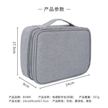 BUBM 数据线数码收纳包装笔记本充电器鼠标移动电源硬盘保护套大容量便携 DPSS-MYB 双层灰色