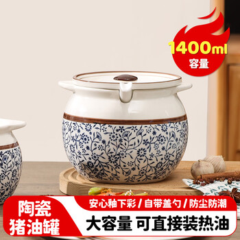 美厨(maxcook)陶瓷猪油罐调料罐 调味罐盐罐辣椒油罐储油罐1400ml配勺子MCX2501