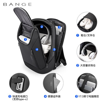 班歌背包高端商务出差旅行包大学生书包17.3英寸电脑双肩包男礼物灰色