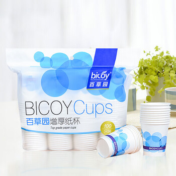 百草园纸杯一次性杯子 250ml加厚纸杯100只装 9盎司增厚纸杯