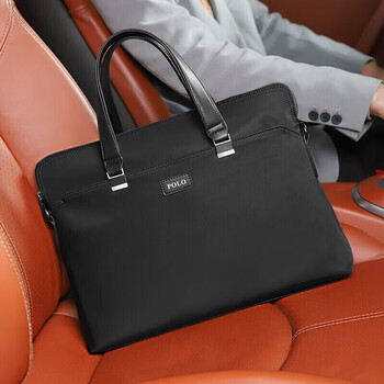 POLO 公文包男士休闲商务包手提包大容量办公14英寸电脑包文件包 黑色