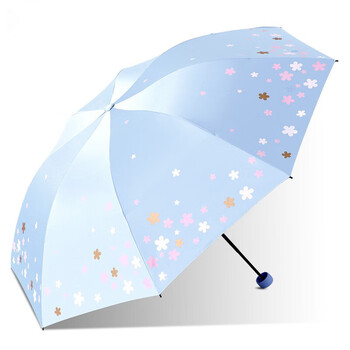 天堂伞 浪漫樱花黑胶三折晴雨伞 33633E