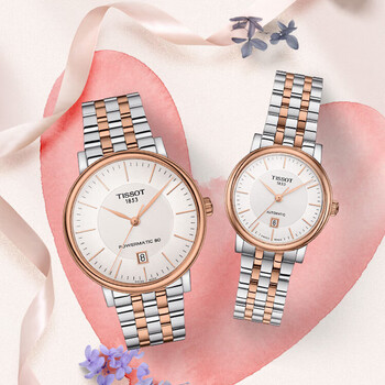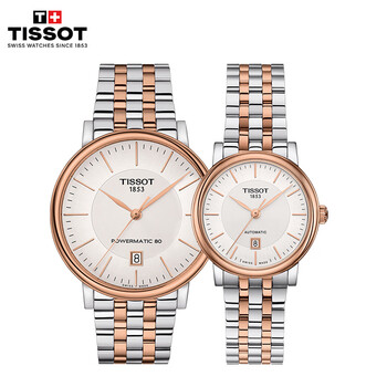 天梭(TISSOT) 卡森臻我系列情侣对表 瑞士机械情侣表钢带腕表商务表生日礼物