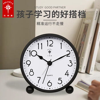 北极星(POLARIS)闹钟 创意学生儿童静音时钟时尚简约床头小清新台钟懒人钟表 SN30黑【开学季】