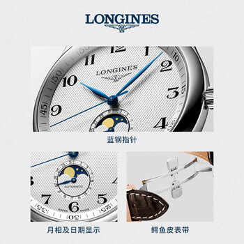浪琴(LONGINES)瑞士手表 名匠系列月相腕表 男士皮带机械表L29194783