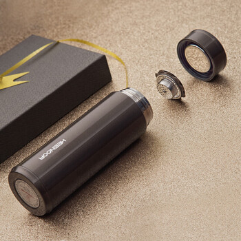 希诺保温杯男304不锈钢水杯大容量车载过滤茶杯子XN-7601灰色 420mL
