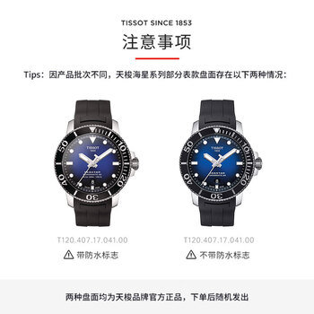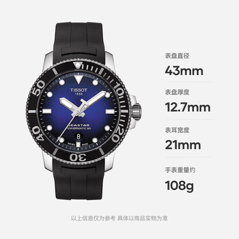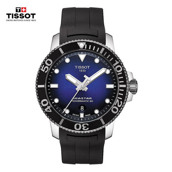 天梭(TISSOT)手表 海星系列男表 瑞士自动机械男士橡胶带腕表潜水表生日礼物