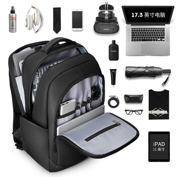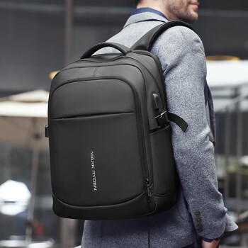 马可·莱登双肩包男大容量背包休闲学生书包17.3吋电脑包MR9191典雅黑升级款