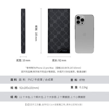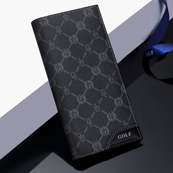 高尔夫GOLF男士钱包多卡位长款钱包男复古印花11卡位卡包休闲大容量皮夹横款票夹商务钱夹5V768385J黑色