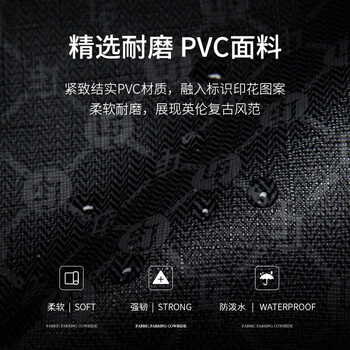 面料:聚氯乙稀(PVC) 辅料:牛皮革/合成革 里料:织物