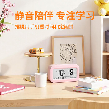 康巴丝(Compas)电子闹钟夜光智能语音报时起床神器闹铃强力叫醒儿童学生床头钟开学必备 2139 粉色 开学季