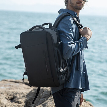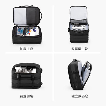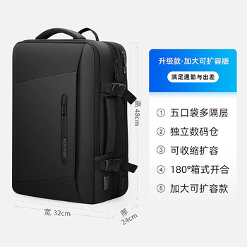 马可·莱登背包男双肩包可扩容大容量17.3英寸旅行书包MR9299典雅黑升级版