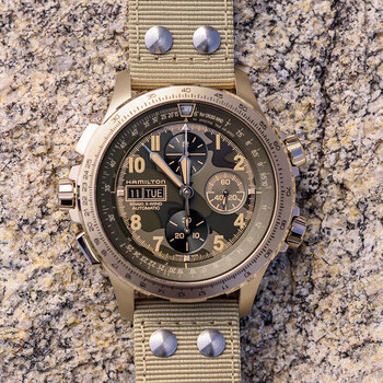 汉米尔顿(Hamilton)卡其航空超越风速计时码表抗磁硅质游丝45沙漠风暴手表男士机械表