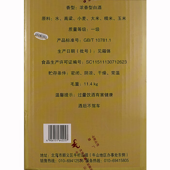 牛栏山 珍品陈酿 蓝标 土豪金 浓香型白酒 42度1L*6瓶 整箱装