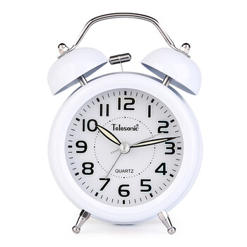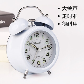 天王星(Telesonic)闹钟 创意学生儿童大铃声闹表卧室床头简约夜光扫秒机芯时钟 A7135-1白色3寸开学季