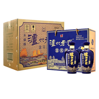 泸州老窖蓝花瓷头曲 浓香型白酒52度 500ml*2瓶*3盒 整箱