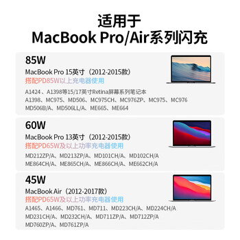 绿联适用苹果笔记本电脑充电线85W兼容65W/45W磁吸快充线magsafe2电源线Type-C转接T型接口MacBook2米