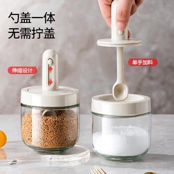 美厨(maxcook)调料盒调料罐 勺盖可伸缩 玻璃调料瓶味精300ml 2只装MCPJ2761