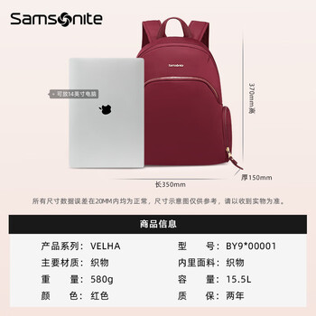 新秀丽(Samsonite)双肩包电脑包女商务通勤14英寸背包书包笔记本出差旅行包优雅时尚