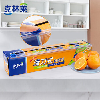 克林莱盒装30*150m一次性滑刀式保鲜膜进口膜大卷带切割器耐高温切割