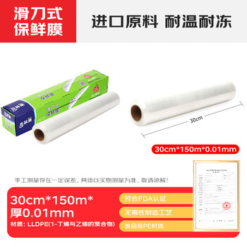 一次性滑刀式保鲜膜进口膜PE大卷保鲜经济装带切割器耐高温切割盒装食品家用保鲜膜盒装30cmx150m