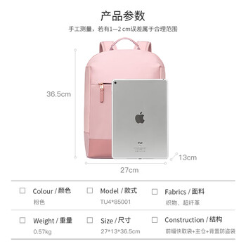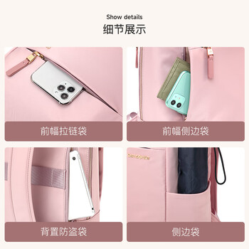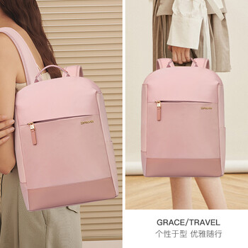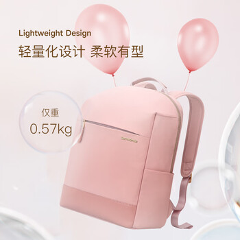 新秀丽(Samsonite)双肩包电脑包女14英寸笔记本背包商务旅行包休闲时尚轻便书包粉色