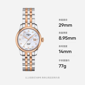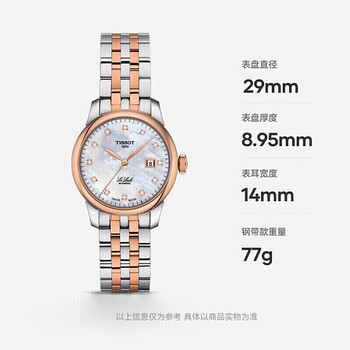 天梭(TISSOT)刘亦菲同款 力洛克系列女表 瑞士机械女士钢带商务表生日礼物