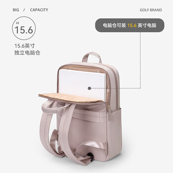 高尔夫(GOLF)双肩包女14/15.6英寸苹果笔记本隐藏手提电脑背包女书包商务出差