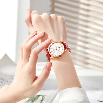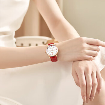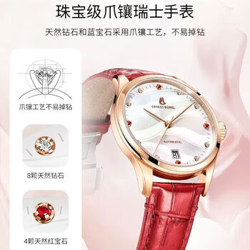 依波路(ERNEST BOREL)瑞士女士手表 女神礼物 镶钻蝴蝶花红皮带机械女表送老婆送女友