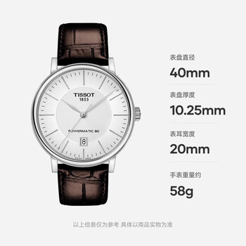 天梭(TISSOT) 卡森臻我系列男表 瑞士自动机械男士皮带腕表商务表生日礼物