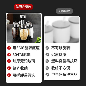 美厨(maxcook)玻璃调味瓶 调料瓶调味盒调料罐调味盒 盐罐 带支架7件套MCPJ2679