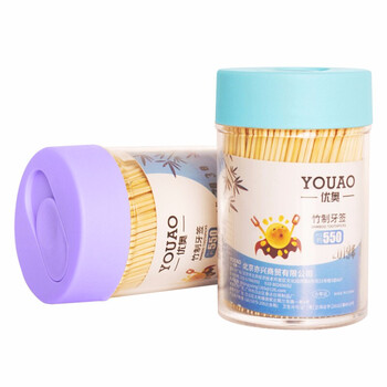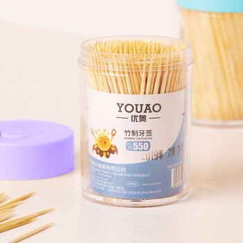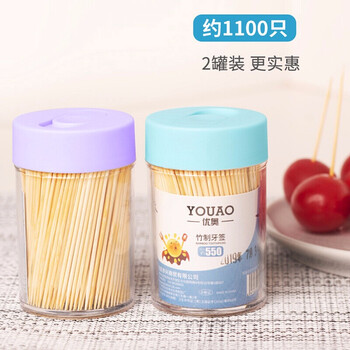 优奥一次性双头竹牙签1100支水果签小吃签罐装便携剔牙签竹签2罐组合