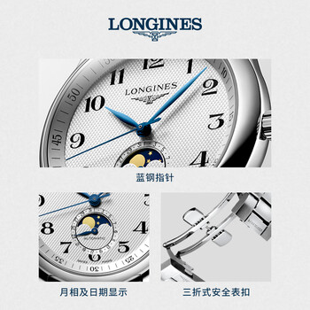 浪琴(LONGINES)瑞士手表 名匠系列月相腕表 男士钢带机械表 L29094786