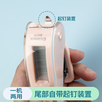 齐心(COMIX)20页迷你小号订书机 省力订书机/订书器12# 小巧便携自储钉功能 学生办公用品 20页 珊瑚粉B3118