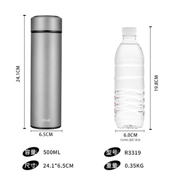 然也保温杯大学生水杯304不锈钢泡茶杯子500ml太空灰R3319