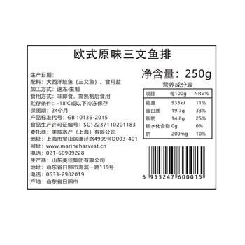 美威冷冻智利欧式三文鱼排净重250g*3包 中段大西洋鲑鱼 源头直发