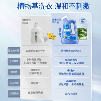 开米涤王浓缩洗衣液清香型1kg*单瓶装中性除菌抑菌柔顺留香温和不刺激