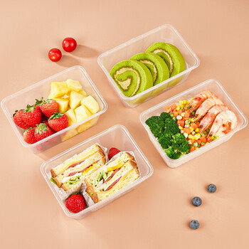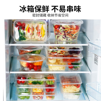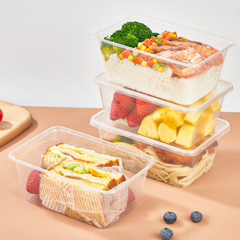优奥一次性饭盒长方形透明塑料快餐盒加厚带盖打包盒餐具50套装1000型