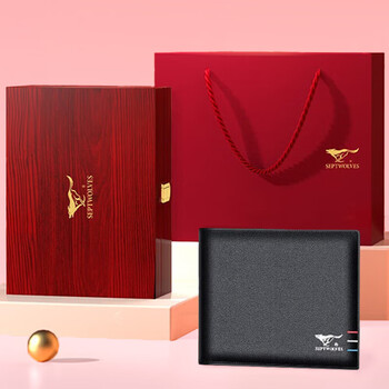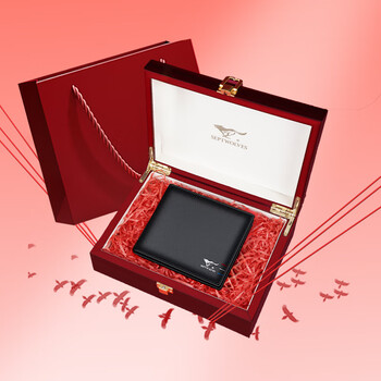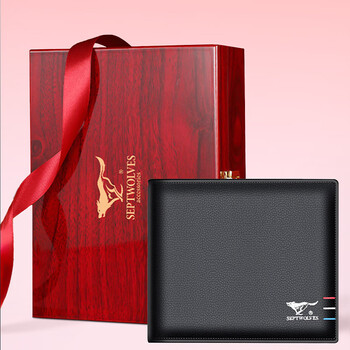 七匹狼钱包男士真牛皮零钱夹木质礼盒送男友老公送爸爸生日礼物