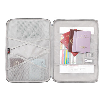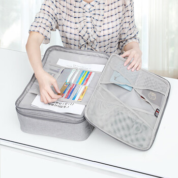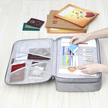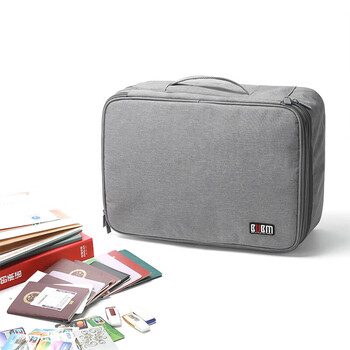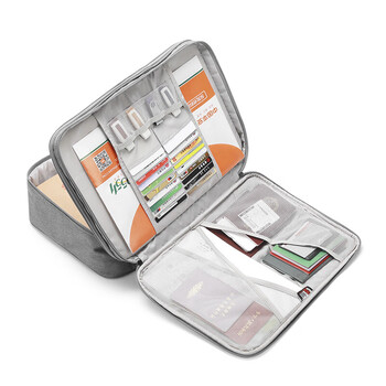 BUBM 证件收纳包居家庭用超大容量多功能收纳袋档案票据文件户口本护照多层整理盒 双层灰色JTB