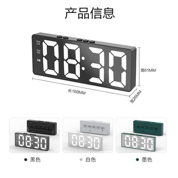 康巴丝(Compas)创意LED大屏时钟 夜光电子闹钟客厅卧室台钟学生闹钟 810 墨绿色开学季