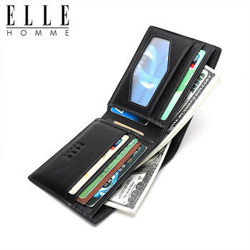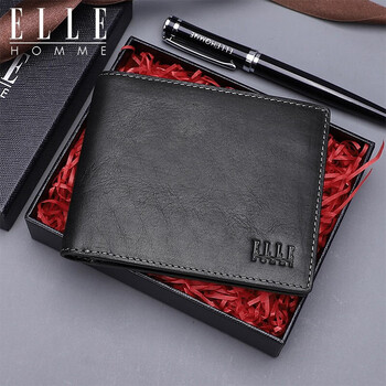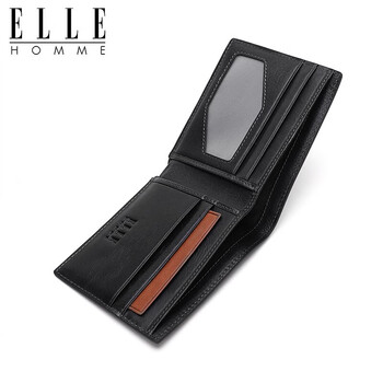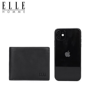 ELLE HOMME男士短款钱包 头层牛皮多功能票夹 横款钱夹4220 生日礼物男