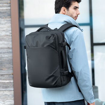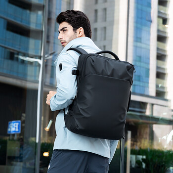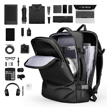 马可·莱登双肩包男士大容量背包17.3英寸书包防泼水商务旅行包MR9711典雅黑
