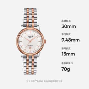 天梭(TISSOT) 卡森臻我系列女表 瑞士自动机械女士钢带腕表商务表生日礼物