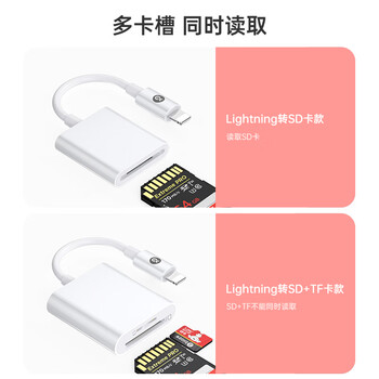 毕亚兹 Lightning口手机读卡器 SD+TF内存卡 相机套件iPhone外接苹果转otg转接头二合一传输转换 P53