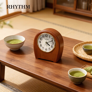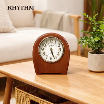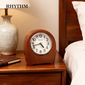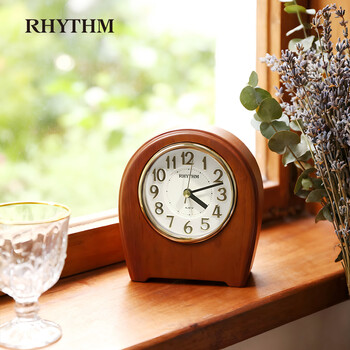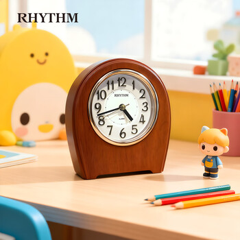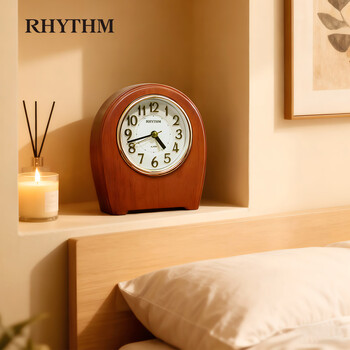 丽声(RHYTHM)闹钟简约木制静音床头台钟学生儿童闹表客厅14cm座钟CRE942NR06开学季