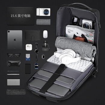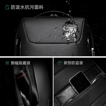马可·莱登密码锁防盗双肩包男书包大容量旅行包防泼水电脑包MR9116精英灰