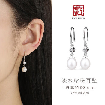 老银匠s925银淡水珍珠银耳坠女生不易过敏送闺蜜女友长款珍珠银耳坠